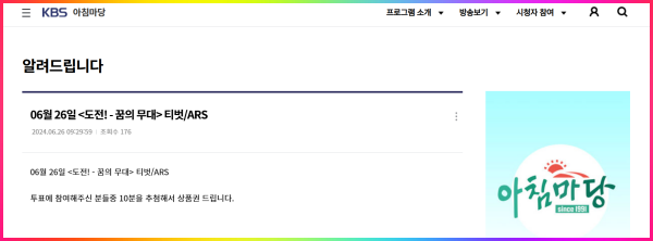 3. 오늘 아침마당 도전 꿈의무대 투표 응모 당첨자 결과