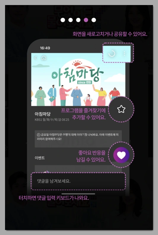 티벗 앱은 아침마당뿐만 아니라 무엇이든 물어보세요 프로그램도 참여할 수 있습니다.